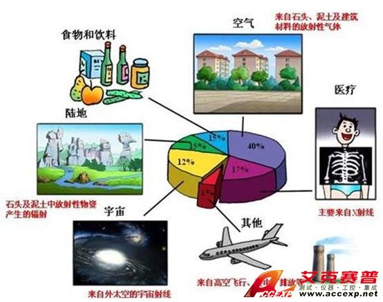 人們每時每刻都會接觸到天然輻射,這種輻射包括宇宙射線,土壤、水、食品和空氣中放射性物質放出的射線。氡是一種自然界中的放射性惰性氣體,是主要的天然輻射來源。人們接觸到的人工輻射最常見的是醫療照射,如X射線攝影、CT檢查及放射治療等。
