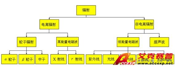 輻射一般分為電離輻射(或叫核輻射)和非電離輻射(或叫電磁輻射),α、β、γ、X射線等能直接或間接使物質電離并產生離子對的輻射稱為電離輻射。非電離輻射是指能量比較低,并不能使物質原子或分子產生電離的輻射,例如紫外線、紅外線、激光、微波、手機輻射等都屬于非電離輻射。