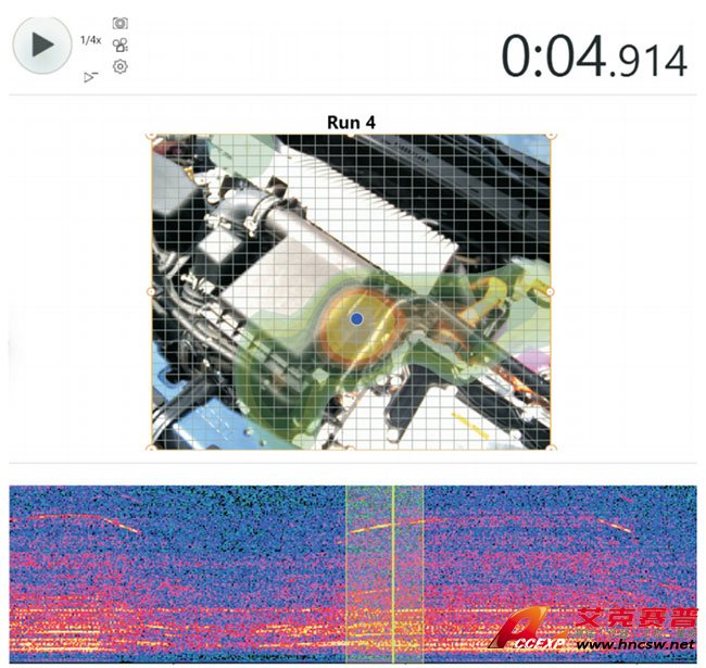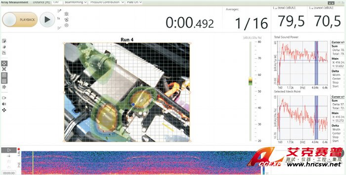 但是,這項(xiàng)工作還尚未完成。測(cè)試的結(jié)果必須報(bào)告給同事,或管理層,更改建議必須再次實(shí)施并測(cè)試。聲學(xué)相機(jī)在這里也可以提供幫助。它不僅可以提供噪聲云圖,還可以提供頻譜圖、聲功率圖和視頻,以供記錄和比較之用。錄制的測(cè)試也可以以較慢速度重放,以調(diào)查短期事件。這些功能顯示出了聲學(xué)相機(jī)在故障排除,異響檢測(cè)和客戶投訴評(píng)估方面的價(jià)值。