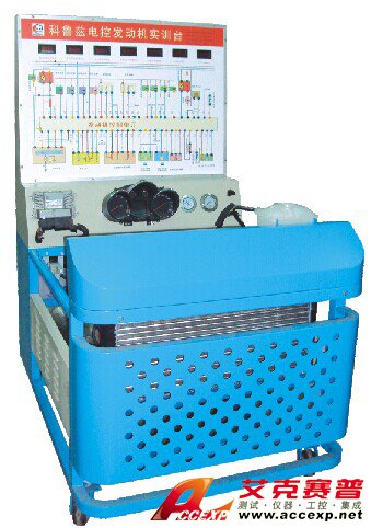 科魯茲發動機總成、原車發動機控制電腦、組合儀表、防盜電腦、發動機起動運行所有相關的原車附件、故障設置和排除系統、原車電路原理圖板及檢測端子、60AH大容量蓄電池、大容量不銹鋼油箱、發動機加速機構、控制面板柜、可移動臺架、臺架電源總開關、OBD診斷座、散熱系統、任務驅動教學模式的實訓指導書及臺架操作說明書。各傳感器及執行器安裝數字顯示表、臺架安裝燃油壓力表與真空表、帶鎖止萬向的腳輪、不銹鋼護手、臺架高溫及轉動等部位加裝防護裝置。