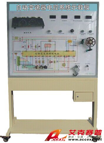 變速器控制單元、變速器電磁閥總成、車速傳感器、儀表、換檔開關等。檢測端子、故障設置系統、大容量蓄電池或12V開關電源、大型彩色噴繪電路原理圖、控制面板、可移動臺架、使用說明書及任務驅動式實訓指導書等。