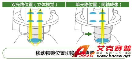 0.5X物鏡放大6倍觀察,切換到2X物鏡后系統(tǒng)自動(dòng)變倍到1.5倍而保持3倍的綜合倍率