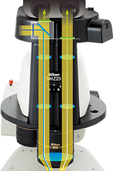 SMZ25/SMZ18為首個(gè)采用復(fù)眼熒光照明附件的體式顯微鏡。這一創(chuàng)新設(shè)計(jì)保證了在低倍率下明亮與均勻的照明,獲得無(wú)與倫比的均一明亮的大視野熒光圖像。