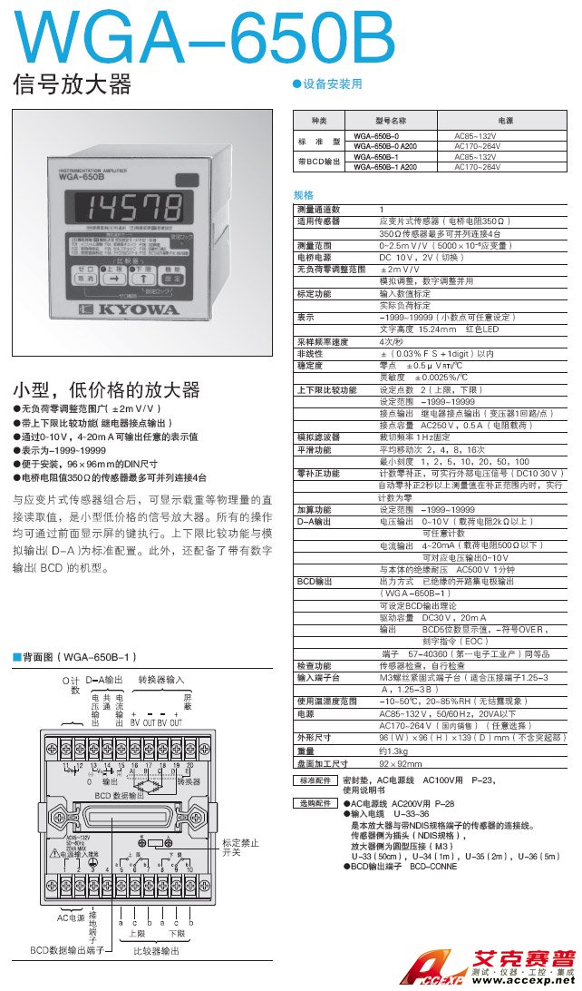 簡介:KYOWA WGA-650B 小型放大器