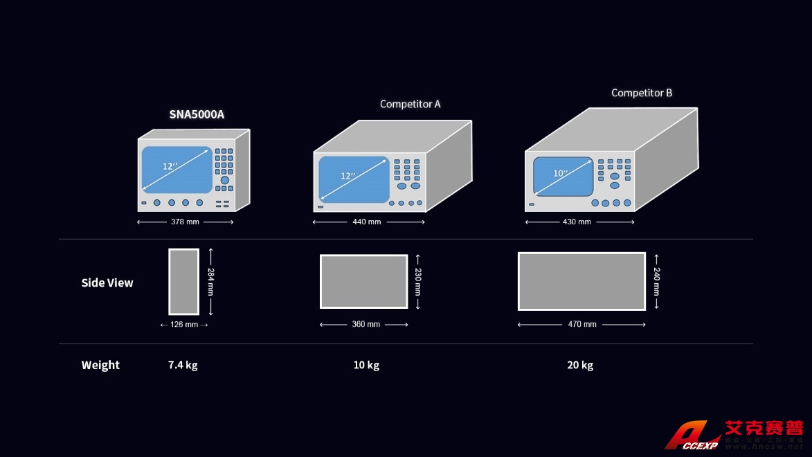 不管是在研發還是在現代化的生產線,區別于傳統笨重的矢量網絡分析儀,SNA5032A超前的外觀設計都能為工程師或者產線節省大量的桌面空間。
