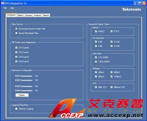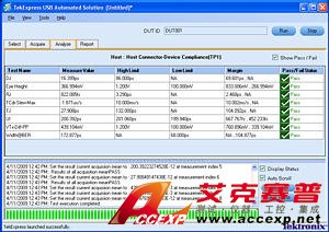 TekExpress USB3.0自動測試軟件(選項USB-TX)- TekExpress USB 3.0提供了自動、簡單和高效的測試方法,滿足SuperSpeed 通用串行總線(USB)規(guī)范要求的USB3.0 發(fā)送端r、接收端、host 和 device 一致性測試。該應(yīng)用程序?qū)y試自動化,包括根據(jù)被測件 類型、測試類型、測試點和使用的探頭選擇合適的CTLE和參考通 道模擬濾波器、測量項。另外,USB-TX和DPOJET配合使用,可 以用于調(diào)試和進一步檢定USB3.0 方案