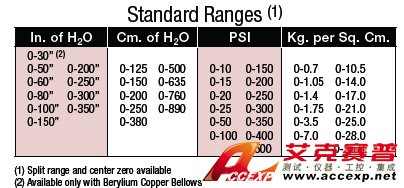 0 to 30” thru 0 to 130” W.C. range .19 Cu. In.