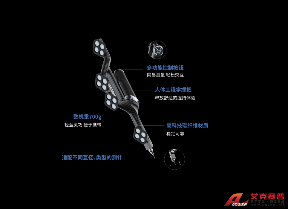 航天級(jí)碳纖維材質(zhì)掃描儀i-Scanner,球形設(shè)計(jì)結(jié)構(gòu),堅(jiān)固耐用;搭配一體式人體工程學(xué)控制握把,便于長(zhǎng)時(shí)間單手靈活移動(dòng)掃描儀,讓技術(shù)人員在不同的測(cè)量場(chǎng)景中,更加敏捷自如,帶來(lái)人機(jī)合一的掌控感。