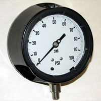 PG250雙刻度高度計(jì),雙刻度顯示英尺水柱和PSI。由于水壓和水柱之間有一個直接的關(guān)系(測量點(diǎn)之上的最高水位),高度計(jì)通常用于測定水容器和水塔的水位高度讀數(shù)。