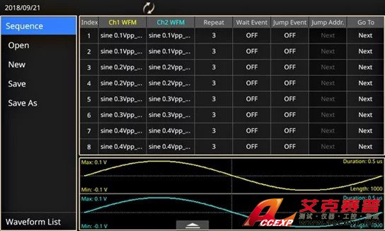 高級(jí)模式可以使用靈活的步進(jìn)控制功能,構(gòu)建復(fù)雜的波形序列